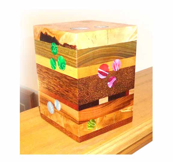 I have been working with wood for over 20 years and enjoy designing my own furniture. Recently I have branched out and started creating art which allows me to freely express myself. I strive for fresh, unique, innovative pieces and love working with geometric shapes. The sphere is my favorite shape. No matter how it is measured, the same dimensions are realized. The sphere is comprised of a number mankind has yet to solve (PI.) I have often been referred to as a visual mathematician. Working with exotic hardwoods allows me the luxury of an extensive color palette. In addition to color, texture, pattern, warmth, and glow are also present. Touch a finely finished piece of wood; feel its smoothness, texture, and warmth. I think you will find it has a calming effect.