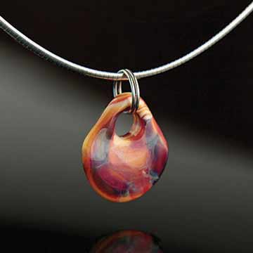 I have taken many glass workshops and classes from glass masters throughout the years. Recently I have found a new glass (borosilicate) to create my glass pendants and hearts. The pendants look like miniature paperweights and my hearts have a watercolor effect in the glass.