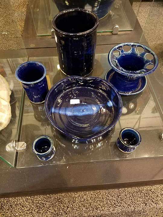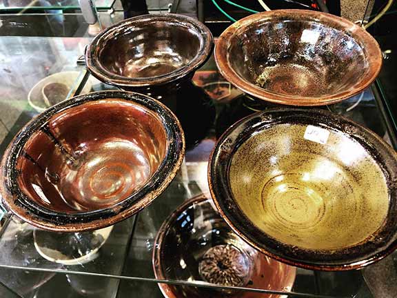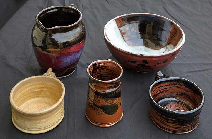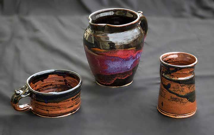 The pottery is fired in electric or gas kilns. The electric kiln allows for consistent slip work while gas firing promotes movement and mixing of glazes. All functional pottery can go into the microwave, oven and dishwasher.